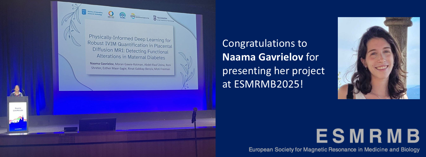 Congratulations to Naama Gavrielov for presenting her project, “Physically-Informed Deep Learning for Robust IVIM Quantification in Placental Diffusion MRI: Detecting Functional Alterations in Maternal Diabetes” at ESMRMB2025!